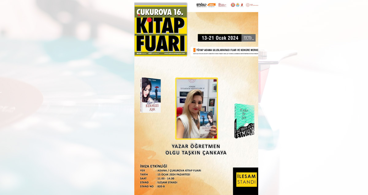 Adana Tüyap Kongre Merkezinde Düzenlenen Kitap Fuarına 15.01.2024 tarihinde Yazar Öğretmen Olarak Katılacagım. Bütün okurları Adana bekliyorum.